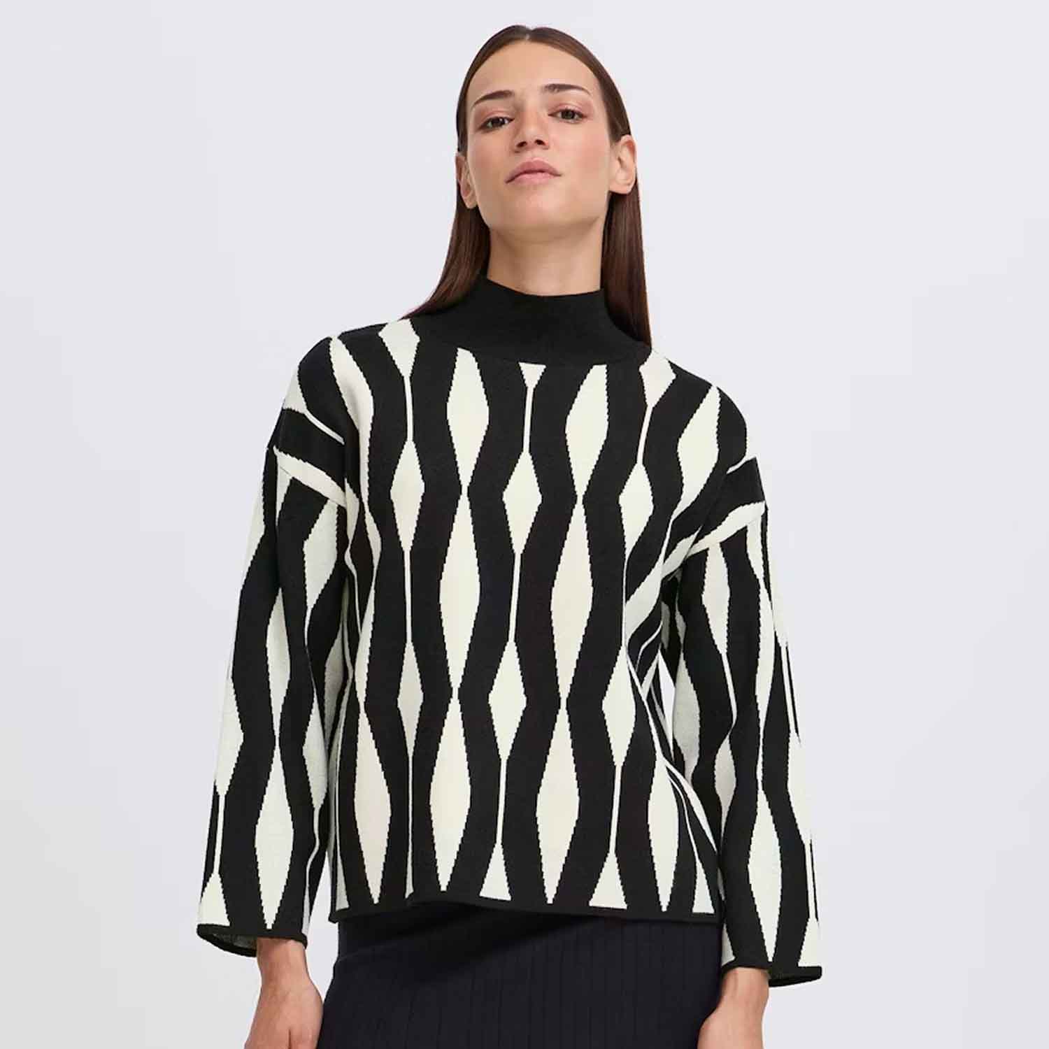 Wrap yourself in effortless style with the B YOUNG OTARI sweater, featuring a relaxed fit, cosy high neckline, and a clean, straight silhouette. The modern geometric pattern adds a contemporary edge, while the soft knit fabric keeps things comfy all day long — perfect for layering up or styling solo, from weekday errands to weekend lounging.