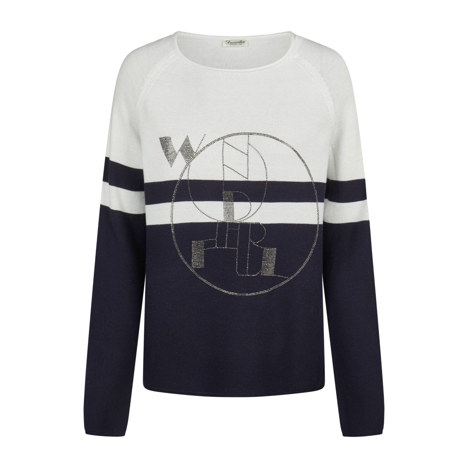 Barbara Lebek’s 55770062 knit jumper brings subtle sparkle to everyday dressing, designed in a soft off‑white and navy palette with a refined diamante graphic that adds just the right touch of glamour. Crafted from a cosy, breathable blend of 50% polyacrylic and 50% cotton, it offers a comfortable, lightweight feel with lasting durability. The classic knit silhouette keeps the look effortlessly elegant, while the gentle shimmer elevates it for polished casual styling. Easy to pair with jeans or tailored trousers, it’s a versatile SS26 piece that blends comfort, warmth and understated sophistication.