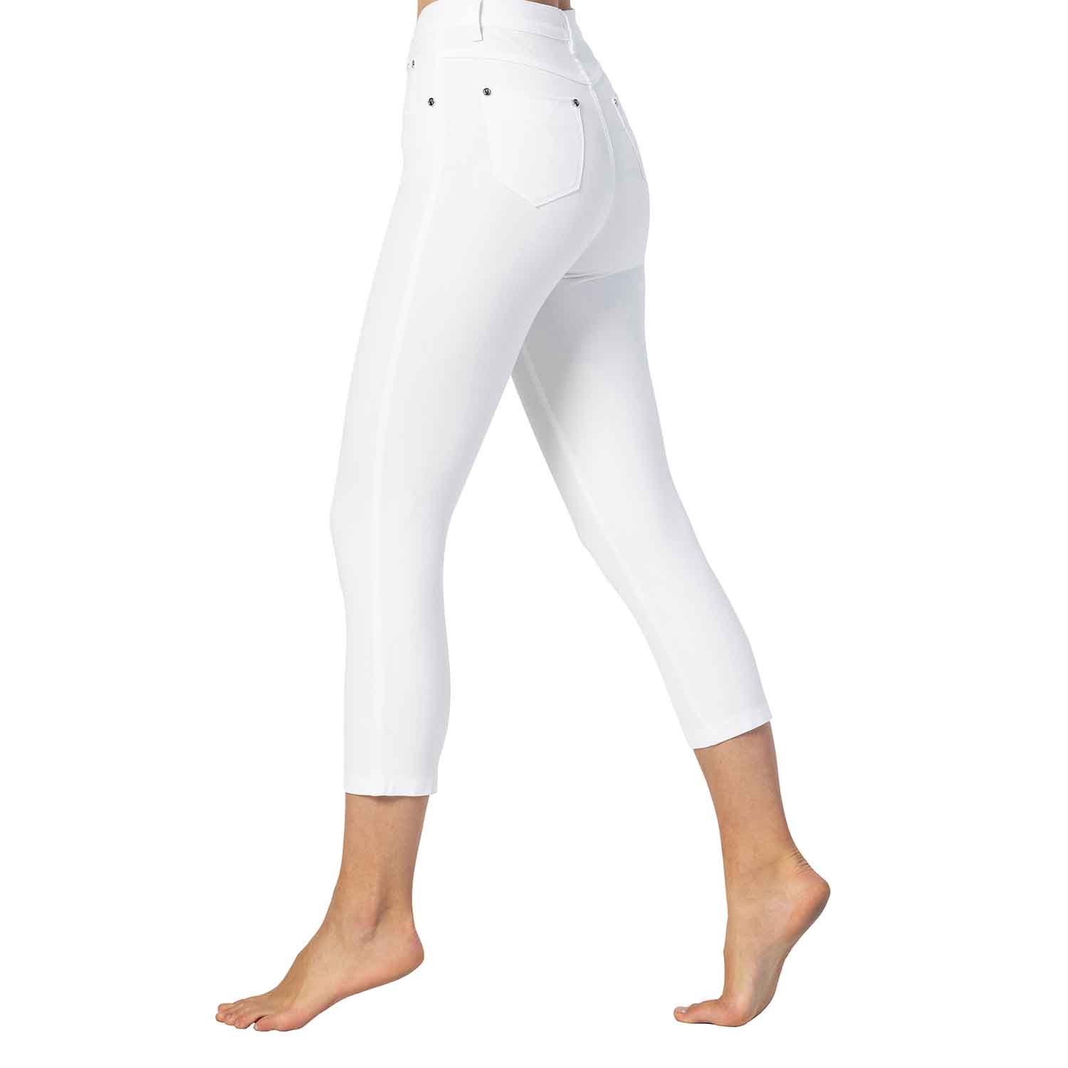 MARBLE High Waist Crop Jeans in White. Crafted from a cotton-rich fabric with four-way stretch for ultimate comfort and flexibility, these high-waisted cropped jeans feature a slim fit for a flattering silhouette. A versatile wardrobe essential for effortless styling.